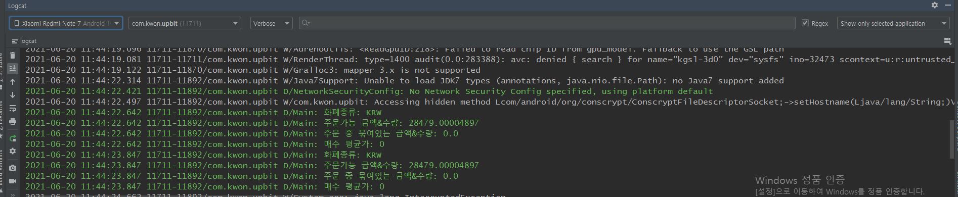 Log.d(TAG, "주문 중 묶여있는 금액&수량: " + locked);