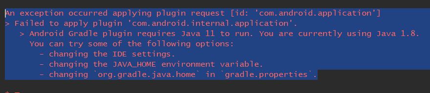 > Android Gradle plugin requires Java 11 to run. You are currently using Java 1.8.