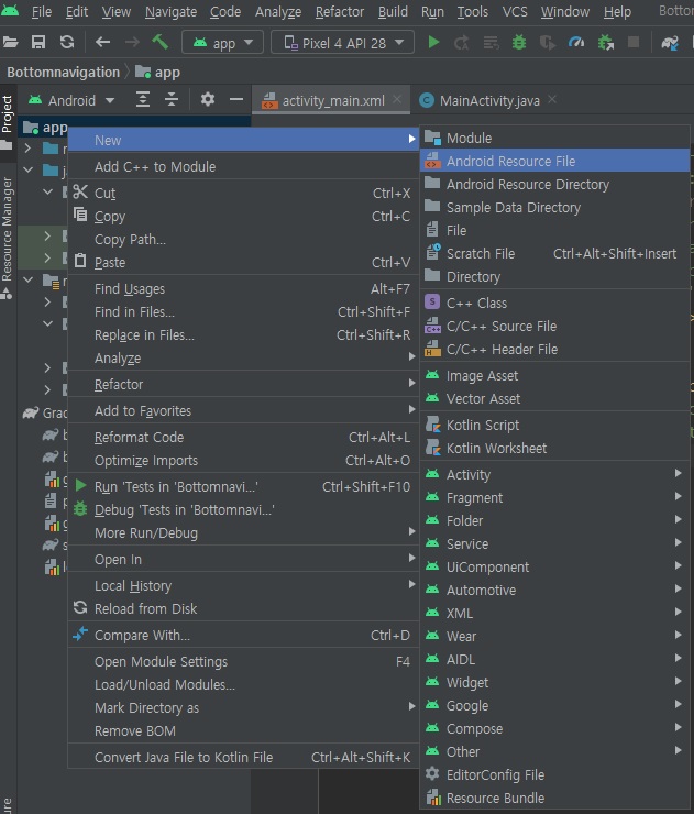 app -> New -> Android Resource File