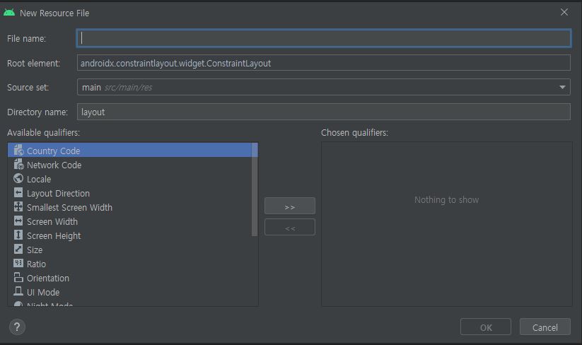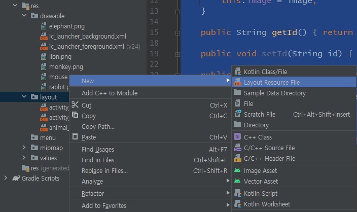 layout 클릭 -> 마우스 오른쪽 -> New -> Layout Resource File