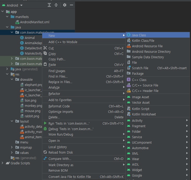 Animal elephant = new Animal("0", "elephant", R.drawable.elephant);