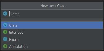 java -> 프로젝트명 클릭 -> 마우스 오른쪽 -> New -> Java Class