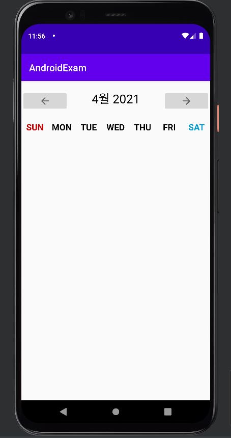 2. 중앙의 텍스트뷰는 이번달을 보여줍니다.