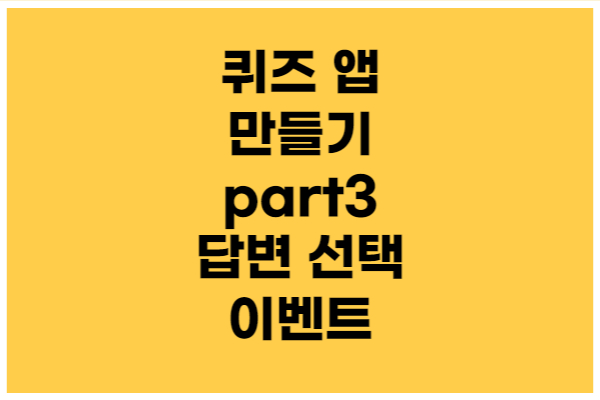 안녕하세요. 이번 시간에는 퀴즈 앱 만들기 세 번째 시간 - 답변 선택 이벤트를 만들어 보겠습니다.