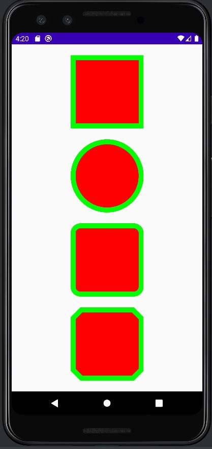 4. CutCornerShape(20.dp) : 네모 모서리 각지게(각진 정도)