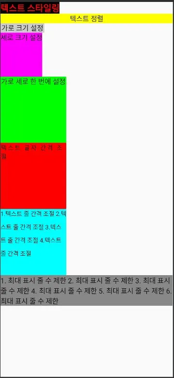 Text(text = "1. 최대 표시 줄 수 제한 2. 최대 표시 줄 수 제한 3. 최대 표시 줄 수 제한 4. 최대 표시 줄 수 제한 5. 최대 표시 줄 수 제한 6. 최대 표시 줄 수 제한",